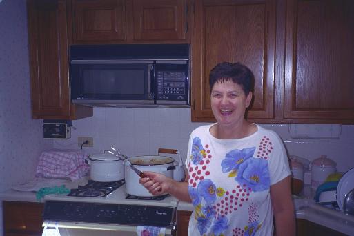 This is my Mom at the place she can be usually found at: in the kitchen.