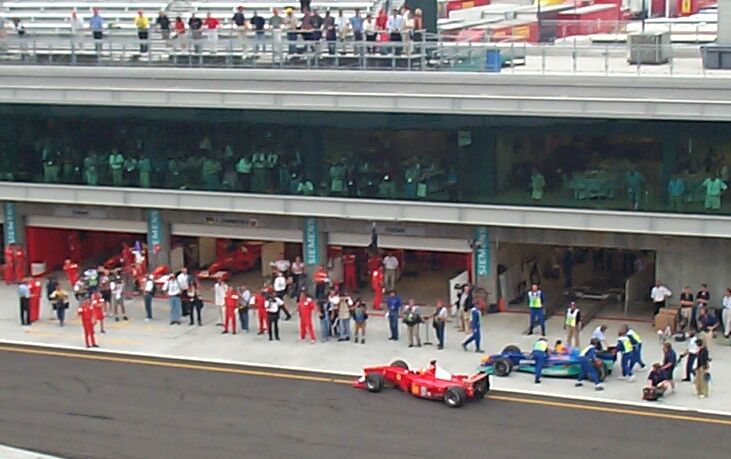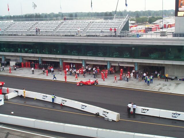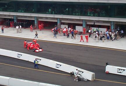 Schumi exits the pit