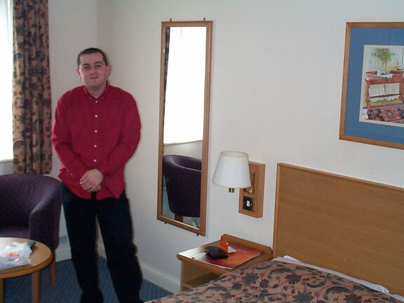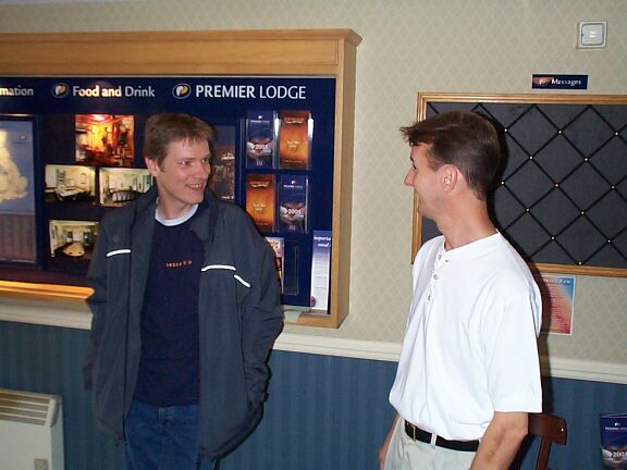 We arrived at Birmingham at around 3pm following Warren's excellent instructions. On the way there we had calls from Marcel Donne, Jogeir and Martin Galway (Martin was in Manchester at his parents' house, so he drove to Birmingham - not what he planned). On arrival at the Premier Lodge hotel, the first person we saw in the parking lot was David Whittaker, then soon later Jeff Minter showed up, too. Inside the lobby we also met Tony Crowther, and I think Fred Gray was there, too! Whew!!!...