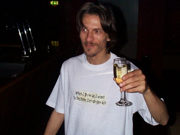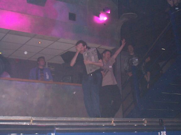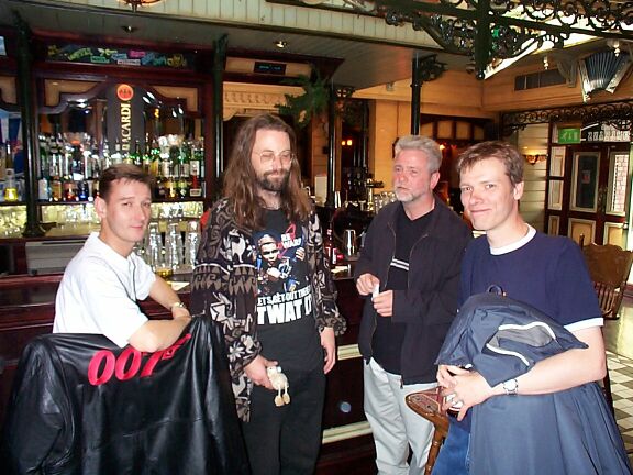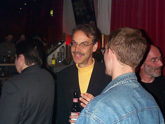 I haven't talked a lot to the composers, but Rob seemed like a very intelligent person. He was talking faster than in Justin's radio interview. Martin was a very plesant surprise who was also very intelligent and fun to be with. I haven't talked much with Richard Joseph or Tony Crowther to formulate any opinion about them. I had a short chat with Fred Gray, he seemed like a very curious person, asking many questions, also very knowledgable. He even asked me to email him the pictures I took of him! David always had a big smile on his face (like everybody else tonite, I think!), and not only he drank a lot, he also bought drinks to others (most notably to Peter), and he got so drunk he had to be carried out of the club!