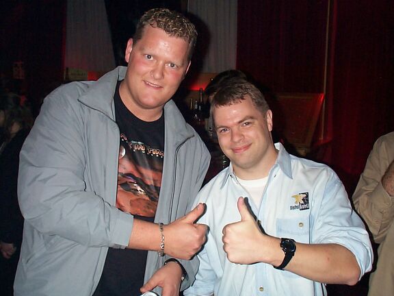 The first time I met Warren was in the hotel room. I went up to the room I shared with him, and there he was, sitting in a chair watching TV. We decided to go down to the neighborhood pub, because that's where everybody was getting together. And so they were! We spent some time there, everybody had a drink, and after changing clothes in our rooms, we walked down to the DNA club. As it turned out, only Warren knew the way, so everybody else waited for him, which meant a 15-20 person large group walking thru the centre of Birmingham to the club led by Warren. It was a 15 minute walk and it was raining (of course). Upon arrival to the club, we had to beat on the door a few times to be let in, but we got in! Of course, it was too early for anything at that time (I think it wasn't even 5 pm), but it was a huge, very modern venue for sure. Around 6pm another dude showed up who looked vaguely familiar to me. Nobody else had the courage to ask him (not even after he asked us about Chris, who wasn't with us at the time), so I did. I guessed correctly: it was Bjorn Lynne!!! Amazing! It was such a pleasant surprise that he finally decided to come, because - as he said it - if people made the trip from overseas and it was only a 1 hour trip for him, why not? What a great decision, Bjorn!