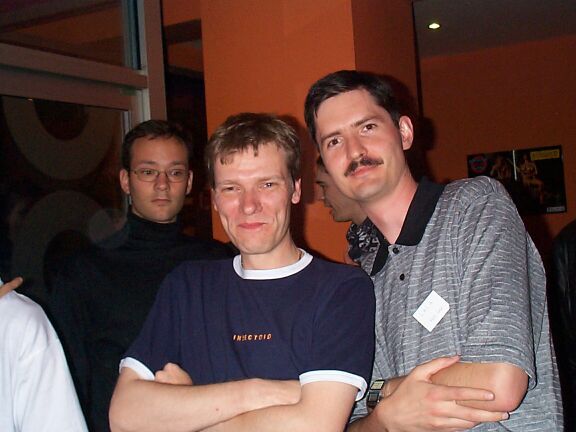 Let's see: Whittaker, Fred Gray, then Martin Galway, Richard Joseph, then people like Puffy64, Slaygon, and of course, Adam Lorentzon (very nice guy, very calm, intelligent!), Peter and Per - wow! What a crowd it was already! It was strange when people got to me and recognized me, and I greeted them like "Hi, and who the heck are you?" and then they said their name and I said "Ahh, yeahh!! Nice to meet you!" It was great to associate faces with the names we all know online. It was lots of fun, even if awkward at times.