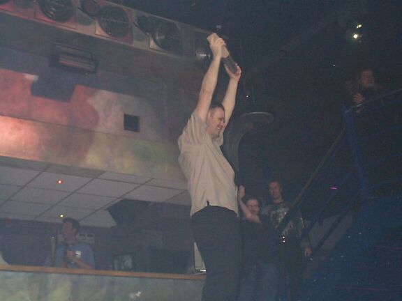 Unfortunately, the club itself didn't fill up. The few people who danced on the dance floor were mostly those familiar to the C64 scene and were the people who came down from the VIP room. As the evening went on and as the number of people inside the club didn't increase, so grew Chris' frustration and disappointment. I think, everybody who was at the event appreciated it very much and thanked Chris for it, but financially, it was definitely a bust for him. I think, secretly he hoped to make some money to cover at least the cost of hotel rooms and plane tickets of the VIPs, but I seriously doubt he managed to do that. Which is too bad. I think, the primary problem was that the event was Wednesday night, which is a weekday, and not very good for university students when most of them are in the middle of their exam season, too... But everybody who was at the event enjoyed it a lot!
