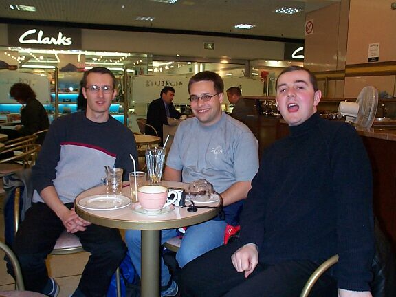 In the morning, it was of course, Warren, who woke up first (I hate mornings!). He went out to have breakfast, where he saw Chris talk to Rob and Tony. Martin was probably already on his way back to the US for the E3 convention. Warren and I walked over to Hotel Ibis to meet Adam and Peter (and Per and Mr. Gamebase64 and his girlfriend).