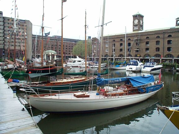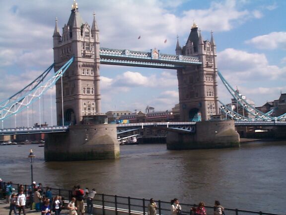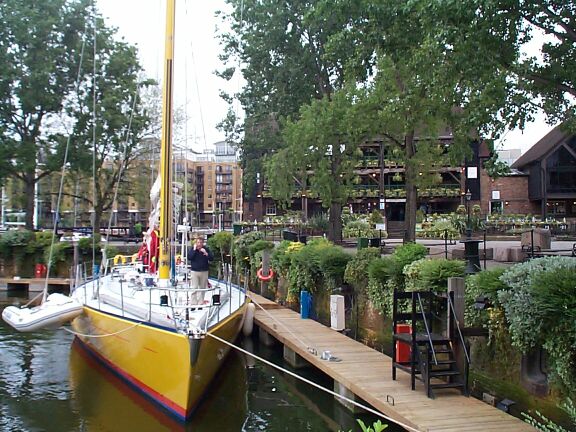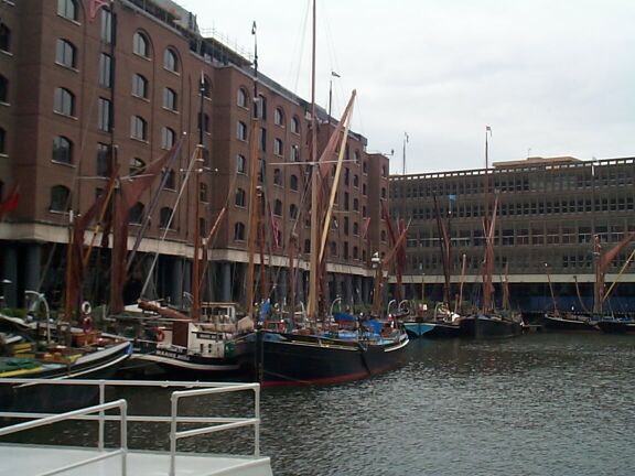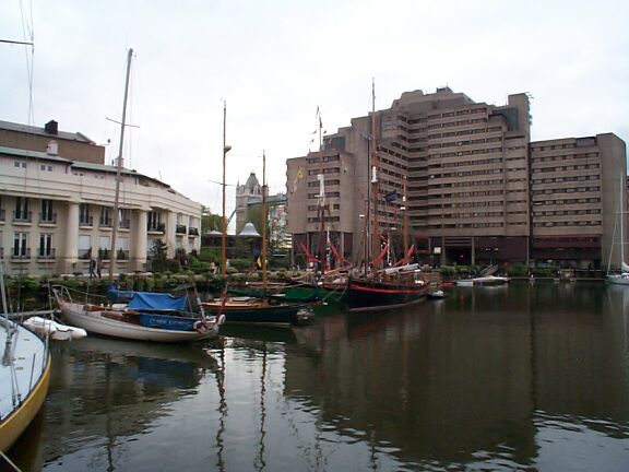 Then I walked around the tower to the St. Katherina Docks, which was really nice. A few lazy Americans went into the first nice restaurant (actually, an inn) they saw there, but I was smarter than that after I saw their prices. So, I walked around and found this pub/restaurant. The pub was starting to get full (it was, after all, Friday night), but the restaurant was empty - only I ate there. I had some soup and then fishcakes with chips and mixed salad. It was okay, but yet again, I couldn't eat it all. However, the waitress was a very cute young girl! I think, the tight pants make every woman look nice here...
