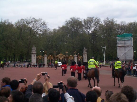 By the time I arrived to Buckingham Palace, a huge crowd gathered before the palace, and the guard changing ceremony was already sort of on its way. I watched the whole thing which was actually pretty good, as the Scottish guards played music on the bagpipes, and the Red Guards brass band played uptempo, catchy tunes.