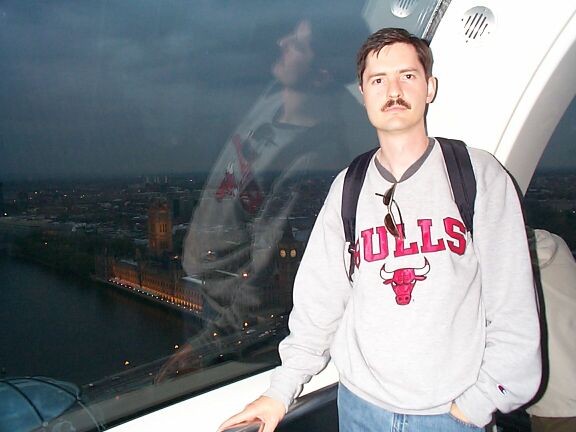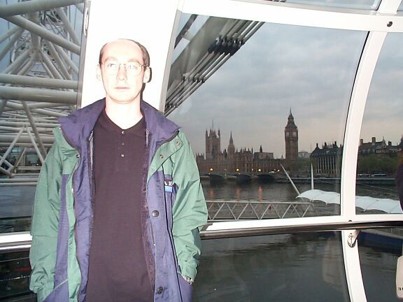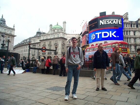 From there, we walked to Trafalgar Square (Admiral Nelson yet again escaped the light-sensor of my camera, grrrr), then walked to Piccadily Circus, which was jam-packed with people. So was the south end of Soho, which we also walked thru all the way to the river, where we took some pictures of Cleopatra's Needle, too. (The bastard English stole this obelisk from Egypt!) From here we walked over the nearest bridge to London Eye to meet his colleagues. Joci bought 4 tickets, gave 2 of them to his colleagues, while the 2 of us went to eat something fast in the nearby McDonald's. Neither of us ate beef...