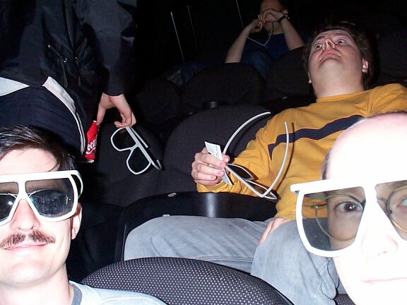 Unfortunately, the long line was moving faster than we thought, so by the time we arrived there, Joci's colleagues were already done. We went up the big "bicycle wheel", took some pictures of the Parliament at night. Joci then managed to convince me to see the 3D Imax movie with them, so we walked over to the nearby Imax theatre. We watched Cyberworld. There were 3 parts in it that were really good, the one with the scarab and the fly, the specially remade 3D version of a scene from Antz and the 3D scene from The Simpsons.