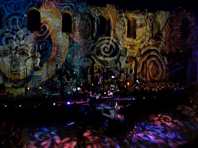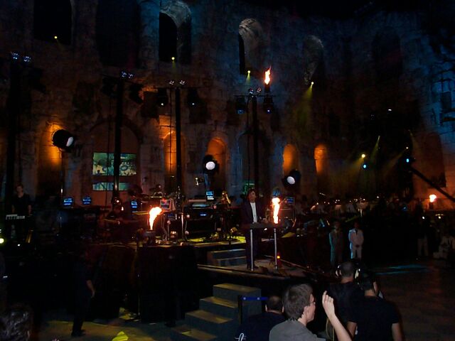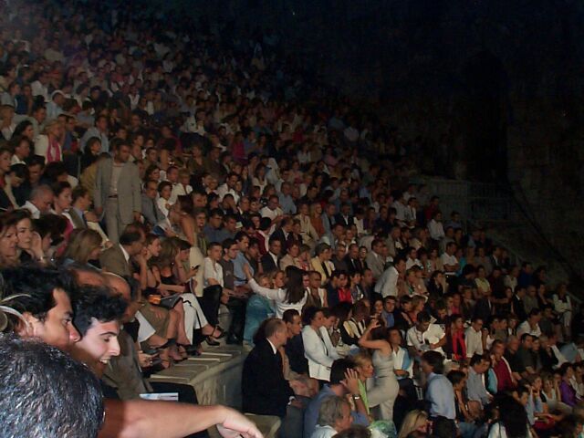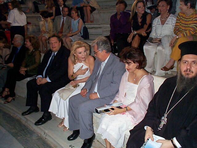 Greek celebrities in the front row, the blonde lady is Marianna Vardinoyannis, who invited Jarre to Greece.