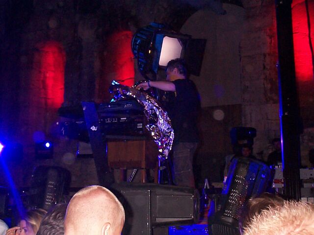 Jarre playing the laser harp.