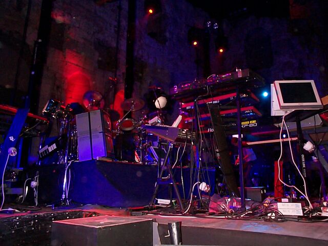 Jarre's equipment getting covered to protect it from the Sun.
