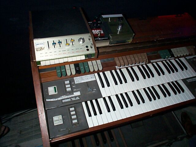 The Eminent 310 organ. Note the cheat sheet on it: it's the chord progression of Oxy4!