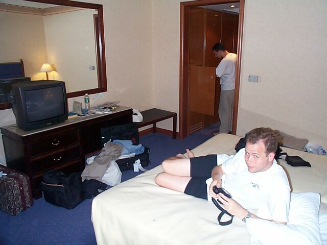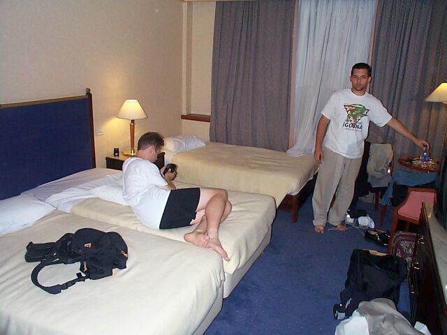 Back in our hotel room: Karl and Chris.