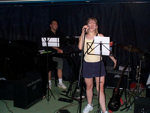 Jon and Brenda demonstrating how the band will use this equipment in the lounge. |