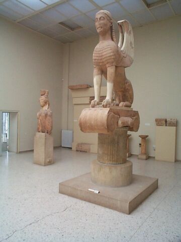A sphynx that used to be guarding Delphi on top of a tall column. |