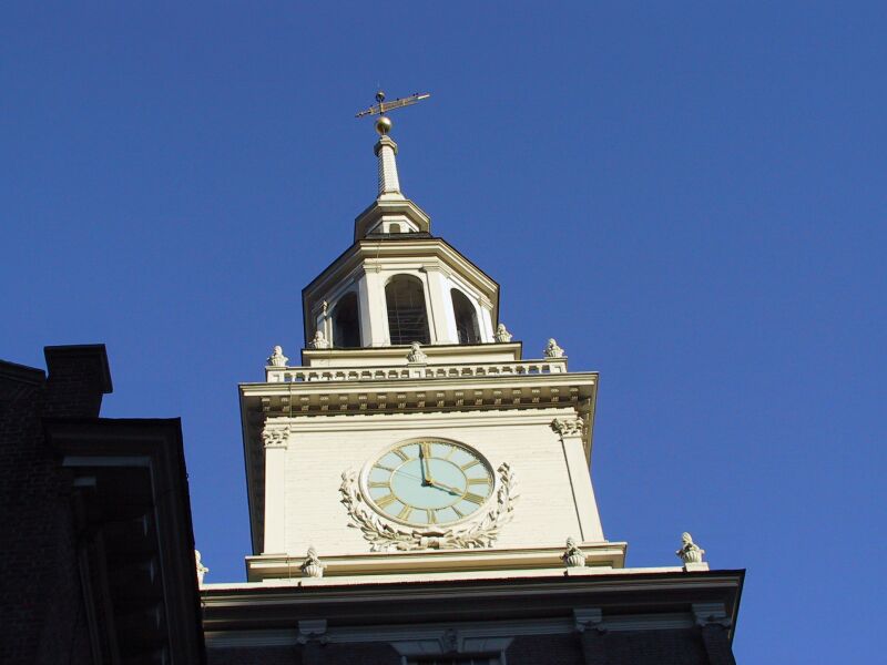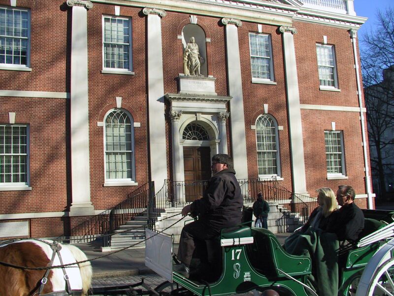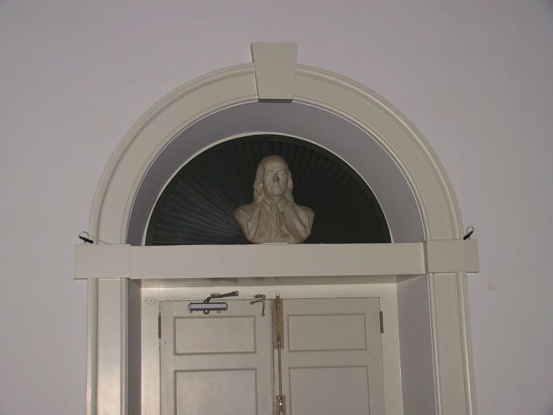 Beloved Benjamin Franklin overseeing the first Congress from above the entrance (he died before the first Congress convened, so this was the only way they could make him attend it)
