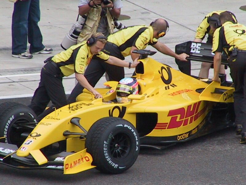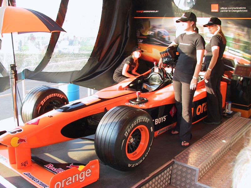 Sarah Fisher doing a PR photo session. Later she drove that F1 McLaren-Mercedes, too. |