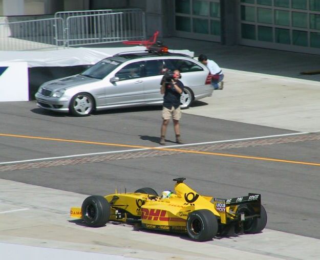 Sarah Fisher stopped in the middle of the road after doing 3 demonstrational laps in the Mercedes. |