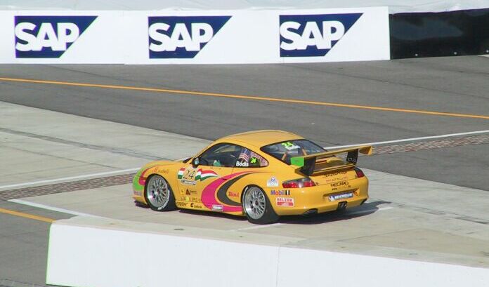 This FedEx plane was basically a flying advertisement: it was circling above the track... |