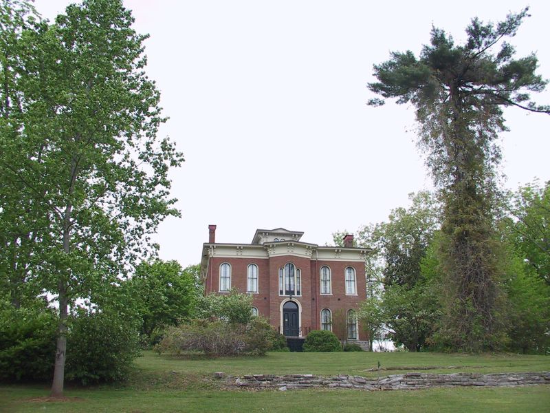 The front of Riverview, which sits on a small hill, but unfortunately no longer has a view of the nearby river.