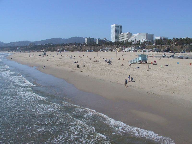 I guess, 65 degrees is considered cold in California, that's why hardly anybody is on the beach.
