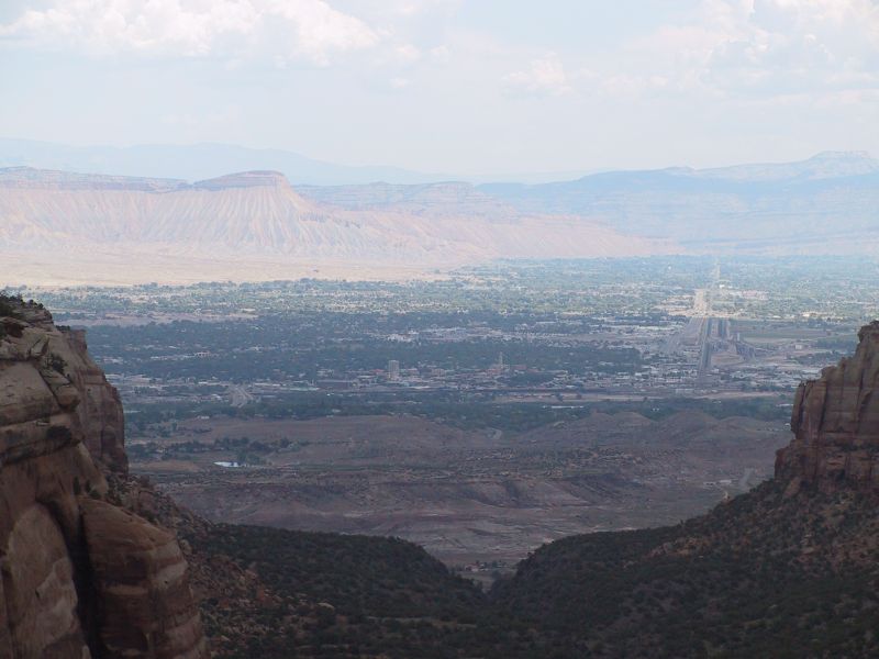 As you can see, the Red Canyon is actually two canyons: the wide one and a smaller narrow one. In the distance: Grand Junction.