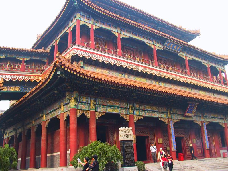 The main building of the Temple. Like all other ancient temples, the Lama Temple is actually a collection of many, mostly one-story buildings spread across a large area. The entrance is always on the South and the main building on the North, in accordance with feng shui priniciples. |