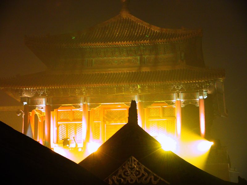 I took this picture of the concert dress rehearsal from the top of a wall in the Forbidden City. I would've climbed the roof, too, but it proved to be too steep and too slippery.