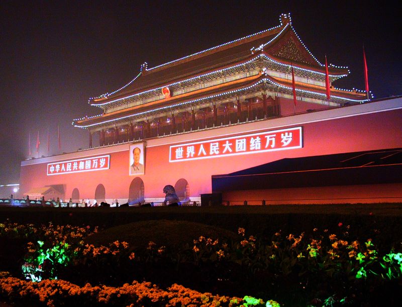 Having fed up with not being able to get into the dress rehearsal, we got out of the Forbidden City. This is the Gate of Heavenly Peace, the famous south gate of the palace with Mao's enormous picture on it.