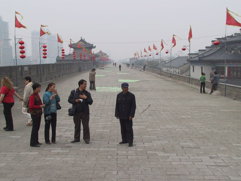 Xi'an was the capital of ancient China. It was surrounded by a massive, square wall with a total circumference of 16 km. The wall is 12m high and 15-18m thick at the base. This picture was taken on top of the southern section. |
