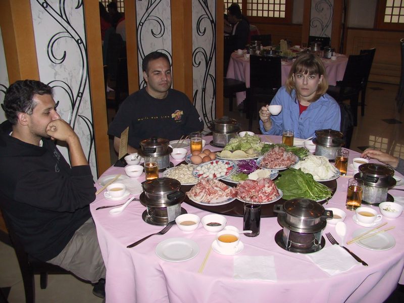 A hot pot lunch in Xi'an. Note that everybody has an individual hot pot. The