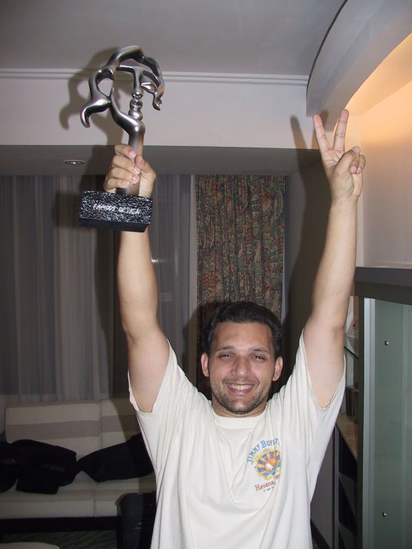 Here Chris is holding up a statue that was in our hotel room that was labeled