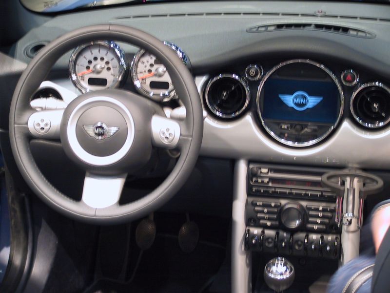 I thought this was clever: the navigation screen of the Mini is tastefully integrated into the big dial above the center console (which is usually where the speedometer is).