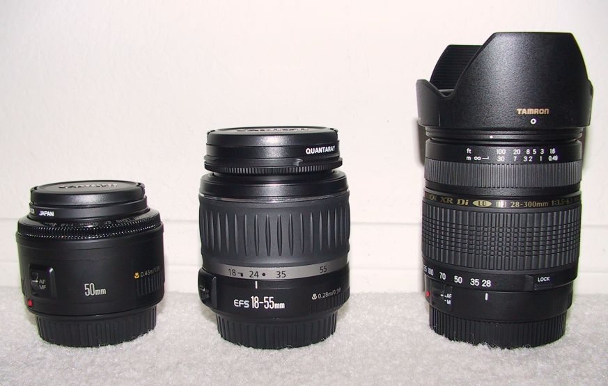 Here's a quick comparison of the 3 different lenses I have for my Rebel XT, and I also threw in two test pictures made with my old 2.3 MP prosumer Canon PowerShot Pro90 IS.