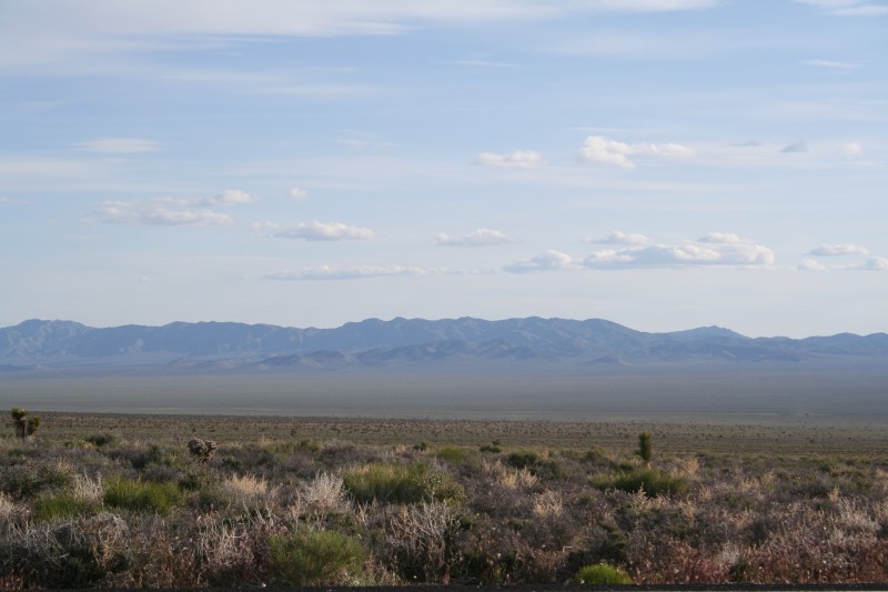 Behind those mountains is Groom Lake - or as it is better known, Area 51. This also explains why I saw two security SUVs (the infamous "Cammo Dudes" maybe?) just a few miles before (and not a single one for 2 hours before that).