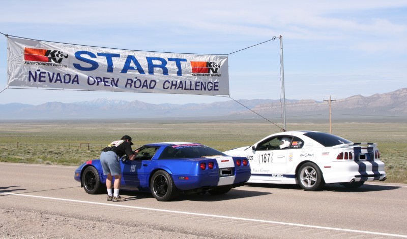 Greg directing drivers at the start line. No, it's not a drag race - cars were let onto the track one by one in 1 minute intervals. --- --- --- Canon EOS DIGITAL REBEL XT 1/250 seconds, F 1/10, ISO 100, focal length: 39 mm, flash: Not fired, compulsory flash mode