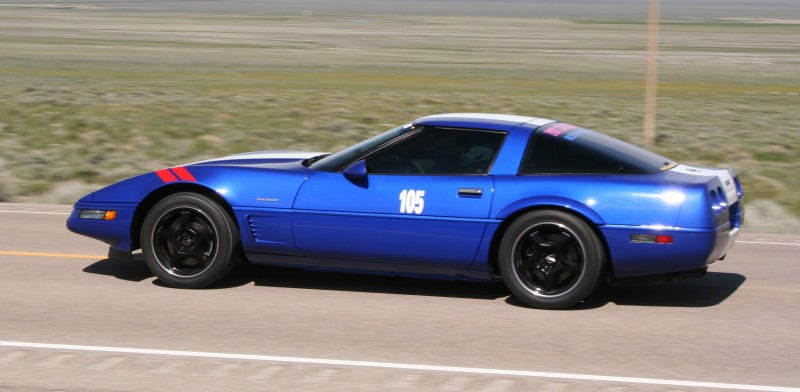 A blue C4 on the road.