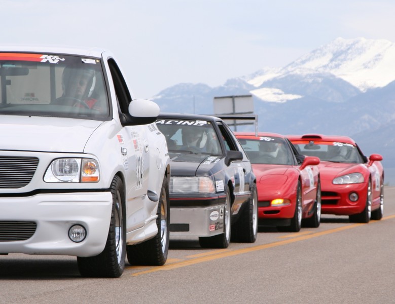 Cars lined up to race.