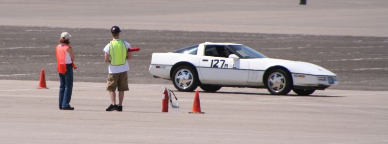 Working on the course Dawn and Mikko look at Cathy speed by.
