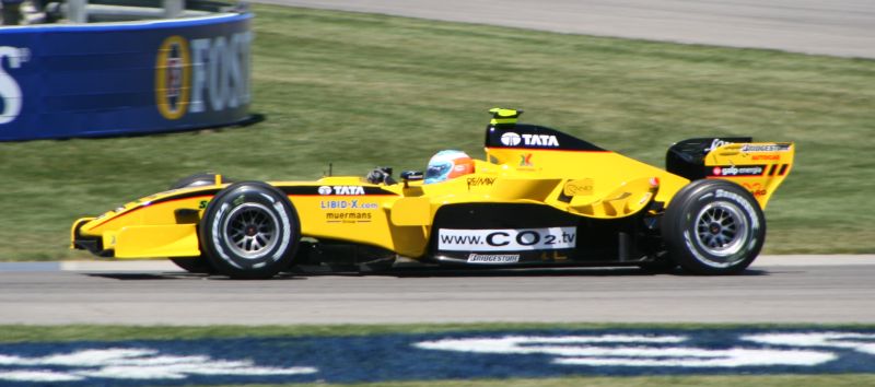 One of the first cars on the track was this Jordan driven by Robert Doornbos.