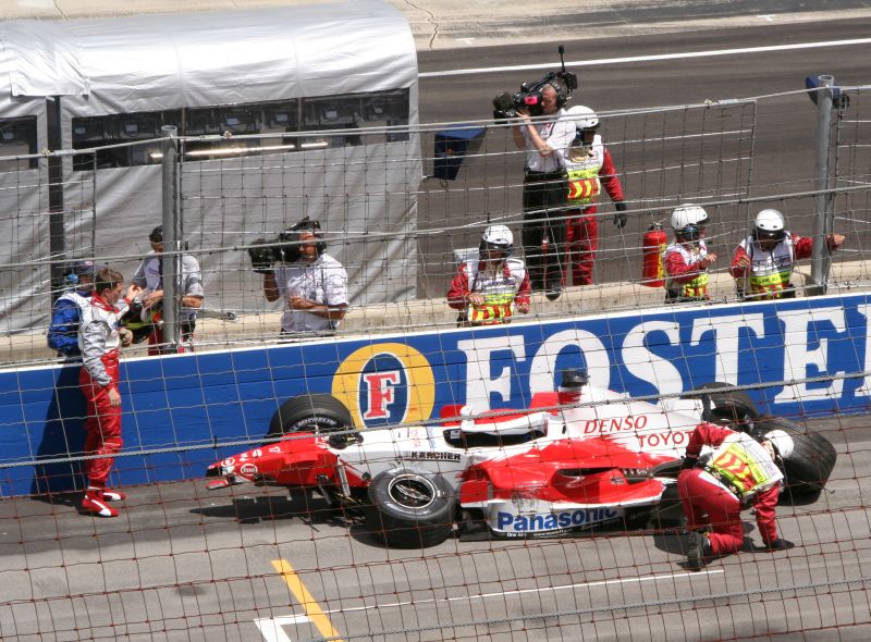 Ralf was okay although he complained about some blurred vision. Later the doctors advised him not to drive in the race. --- --- --- Canon EOS DIGITAL REBEL XT 1/100 seconds, F 1/16, ISO 100, focal length: 109 mm, flash: Not fired, compulsory flash mode