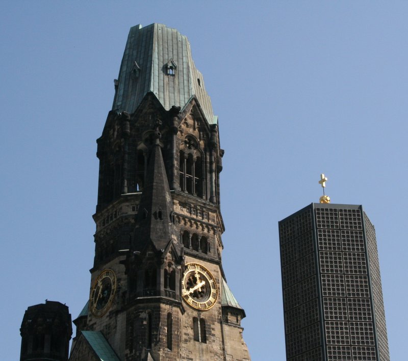 The Kaiser-Wilhelm-Gedaechtnis-Kirche was left unrestored from WW2 intentionally.